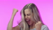 4k videobeelden van een aantrekkelijke jonge vrouw die tegen een roze studioachtergrond viert - 4K Stockvideo