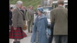(Part 1 of 7) 4x4 cars pull up and a local laird wearing Inverness tartan opens a door for the Queen Mother in a gentlemanly fashion. A chauffeur then holds the door open for her as Prince Philip, Duke of Edinburgh makes his way around the car and joins the conversation. The Queen Mother has come to Scrabster Harbour to see off other members of the royal family, who are leaving on the Royal Yacht 'Britannia' after a holiday in Scotland. Thurso, Caithness, Scotland; August 1993, precise date unspecified. (BBC Motion Gallery Royal Archive Collection - 16/08/1993 - AEZN010F)