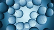 Abstract clear transparent bubbles coming together and interacting with each other in aqua blue background, suitable for skin care and other water based product shots.