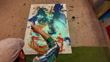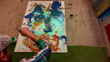 abstract painting in his studio
