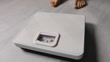 Activiteit met been van vrouwentribune die gewichtsschaal meet voor dieet met blootvoets - HD Stockvideo