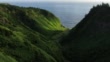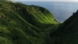Aerial drone view flying through valley towards ocean - 4K Stockvideo