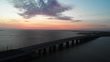 Aerial of the Manahawkin Bay bridge at sunset, Long Beach Island, New Jersey, US.