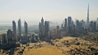 Aerial view of skyscrapers in cosmopolitan downtown Dubai, helicopter blades shadow line, UAE, RED EPIC