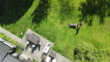 ZI Aerial view of mature man mowing grass in backyard on summer afternoon - 4K Stockvideo