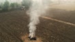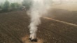 Aerial View of Smoke occurring from agriculture Stubble burning by the farmer in North India. A farmer plowing field with a tractor can also be seen in the video - 4K drone stock video - 4K Stockvideo