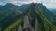 Majestic aerial view of Swiss Alps in Appenzell mountain ridge in summer