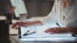 Architect Drawing Construction Plan at Office Desk - 4K Stockvideo