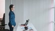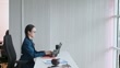 Asian Chinese Woman stretching while working from office stock video - 4K Stockvideo