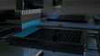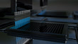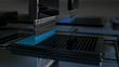 This is a high quality 3D animation of a liquid drug being added to a micro well plate. This type of drug discovery is accomplished using an automated pipetting device which measures precise amounts of a liquid drug per well resulting in the production of measurable light for data acquisition and analysis.