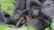 CU baby Mountain Gorilla sitting on its mother then turning to play with other babies - 4K Stockvideo