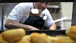 Baker plukken vers brood in de bakkerij - 4K Stockvideo