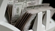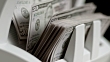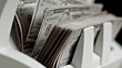 Slow motion close up locked down shot of a bill counter pushing out fifty US dollar bills onto a stacker. Shot in Slovenia.