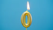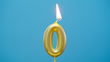 Birthday candle number 0 on a blue background