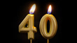 Birthday candle number 40 on a black background