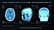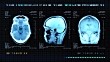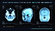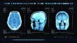 3 videos in 1 file. Brain's Magnetic Resonance Imaging. Animation showing top, front, lateral view .