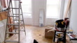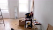 Brooklyn Brownstone Interior Renovation. The camera pans left to right to reveal a sunny room with construction equipment.
