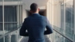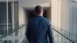 Business man, walking and hallway at office, hotel or conference hall with a successful, confident and professional male inside. Male in suit working as lawyer or corporate person arriving at work - 4K Stockvideo
