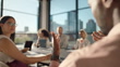 Business meeting, office and man back with speech, talking and presentation. Professional, group and conference room with staff for teamwork and job conversation for advertising ideas at company - 4K Stockvideo