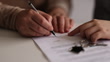 Business of buying or selling real estate Sales agents offer contracts for the purchase of a house or apartment and ideas for buying and renting. - 4K Stockvideo