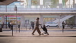 Businesswoman walking at bus station while commuting with her small daughter - 4K Stockvideo