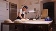 Caucasian Baker Kneading Dough In A Small Bakery - 4K Stockvideo