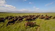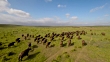 Hd drone footage of a herd of buffaloes running across the grasslands in southern Africa
