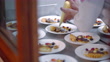 Chef decorating the delicious plate at a restaurant kitchen for main course