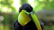 A closeup of a Chestnut-mandibled toucan (Ramphastos ambiguus swainsonii) in the jungle of Costa Rica.