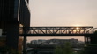 An inviting, peaceful moment in the city, as soft twilight hues embrace urban silhouettes.