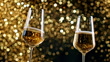SLO MO LD Clinking glasses with sparkling wine with golden glitter in the background - 4K Stockvideo