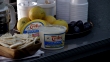 CLOSE ANGLE OF HUMMUS, PITA BREAD, GRAPEFRUIT AND PLUMS OR FRUIT ON COUNTERTOP NEAR COFFEE POT, SUGAR PACKETS AND STYROFOAM CUPS. COULD BE OFFICE BREAK AREA. FOOD. - HD Stockvideo