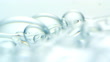 Close up and slow motion of a various sizes of transparent liquid bubbles floating, bouncing and surfing on and under water surface in a shallow depth of field against a light blue background - HD Stockvideo