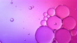 Close up and slow motion of overhead view of pouring clear oil into a pool of water and filling up the frame with floating oil drops against a back lit purple and pink gradation background - 4K Stockvideo