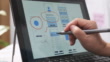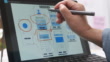close up hand sketching ux ui design mobile design on digital touch screen laptop