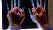 Close up man putting his hands over x-ray of hands + making fists - HD Stockvideo