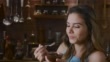 Close-up van een gelukkige Spaanse vrouw eten verwennerij chocolademousse in een rustieke keuken - 4K Stockvideo