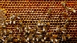 4K Close up of bees on honeycomb in apiary