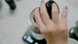 Close-Up of coffee grounds to the coffee dripper - 4K Stockvideo