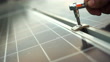 Close up of electrician installing solar panel system outdoors, tightening clamp with hex key. Concept of alternative, renewable energy.