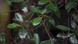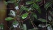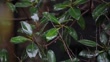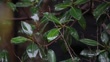 Close-up of rain falling on lush tropical leaves as water splashes and drips off in a heavy storm - 4K Stockvideo