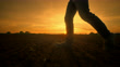 Close-up of young farmer walking through field at sunset - 4K Stockvideo