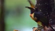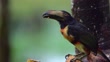 Collared aracari (Pteroglossus torquatus) feeds on a banana