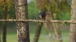 Collared aracari (Pteroglossus torquatus) feeds on a banana