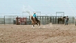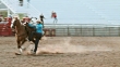 Young women compete in the goat tying event at a rodeo. Utah, USA.