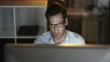 4k video footage of a handsome businessman working late in the office