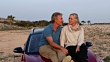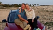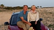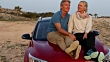 Paar ontspannen op kap van de auto, in de woestijn landschap - 4K Stockvideo
