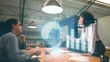 Coworkers using augmented reality device during a meet to analyze graphs at office