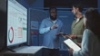 A team of multiethnic developers is meeting to review the data analysis of marketing from social media platforms.