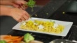 Decorating pumpkin and ricotta spaghetti with thyme - HD Stockvideo